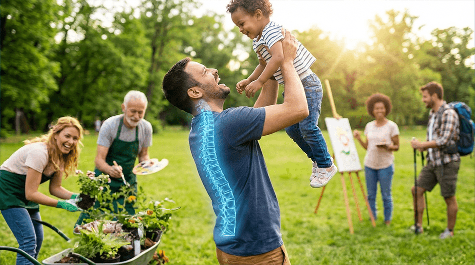 Mobilidade recuperada, postura corrigida e tensão liberada para atividades normais. Voltar a dormir bem, trabalhar sem limitações, brincar com os filhos ou praticar exercícios sem sofrimento.